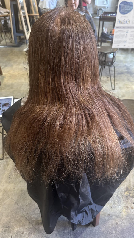 今回、このお客様は弱酸性縮毛矯正とカットの施術を行いました。
