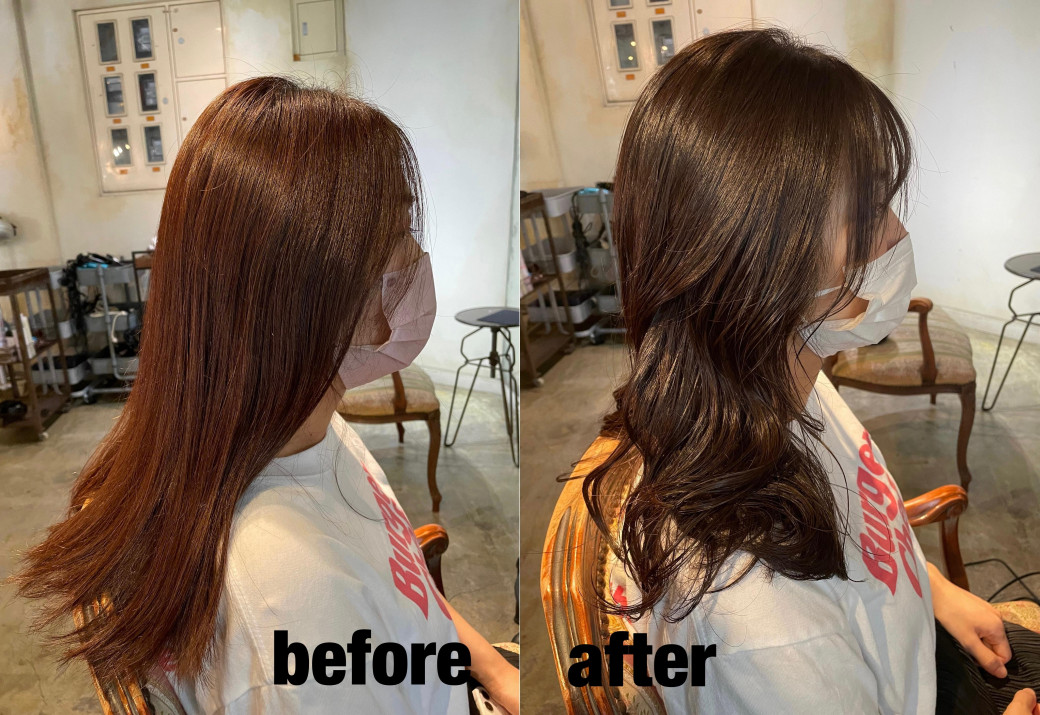 1 弱酸性カラー+髪質改善トリートメントのお客様