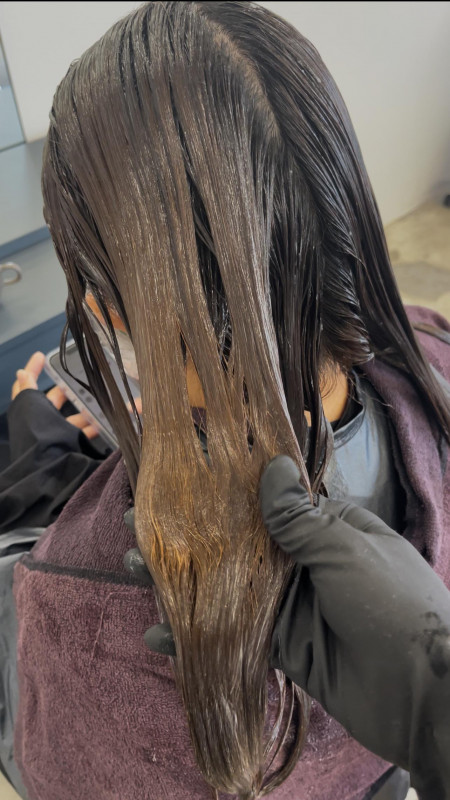 縮毛矯正の工程 鹿児島美容室サンティエ都通り店
