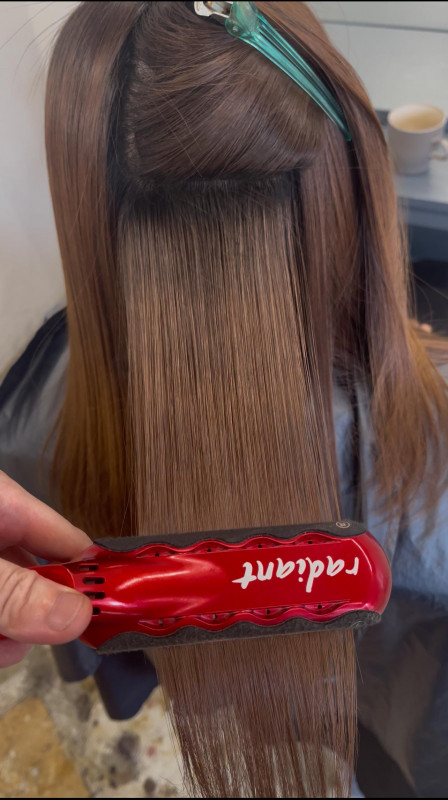 アイロンで整えた状態を、2剤でしっかり固定します。