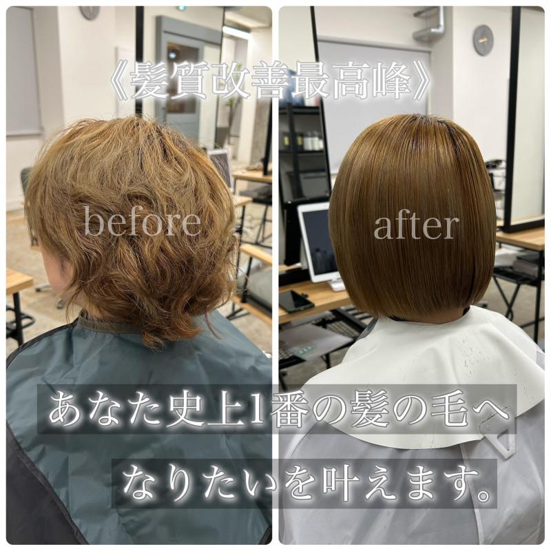 《お客様からの口コミ 3選》 《お客様からの口コミ その1》 私自身が担当させていただいたお客様になります! 髪質改善に興味があったのでしっかり話させていただいて 対応したうえでお客様に1番合った施術をさせて いただきます!