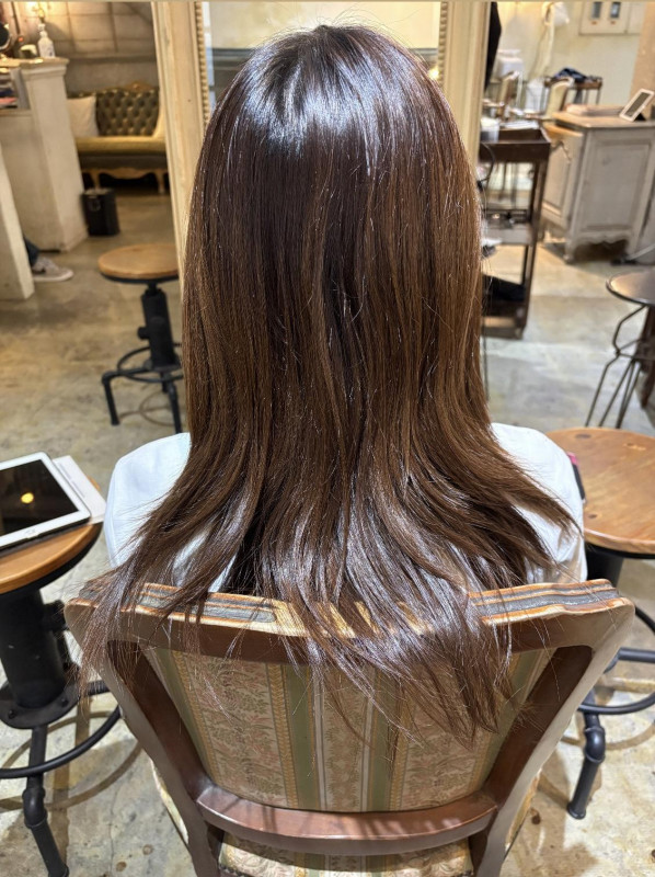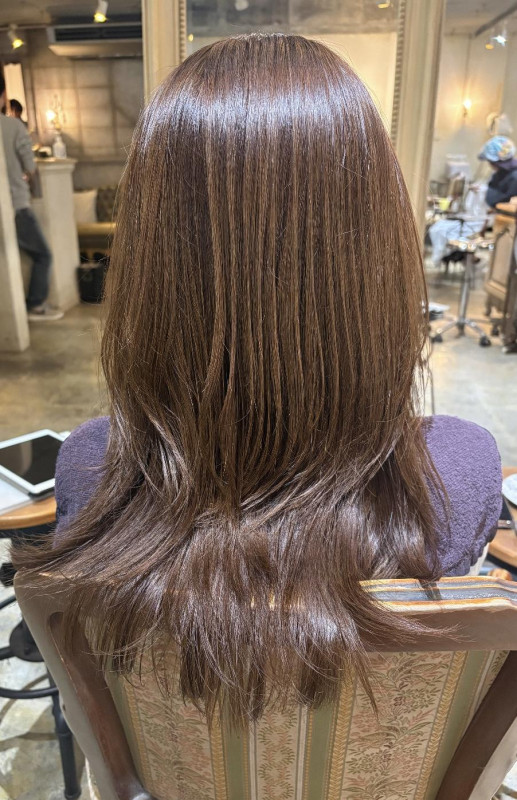 コチラの写真のお客様は弱酸性カラー+カット+髪質改善トリートメントです。