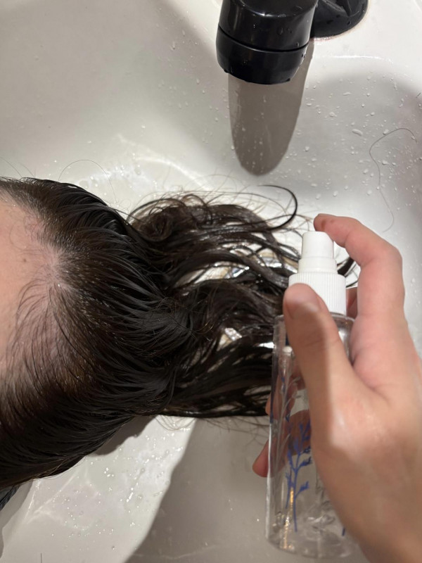 乾かす前には必ず洗い流さないトリートメントをつけます。