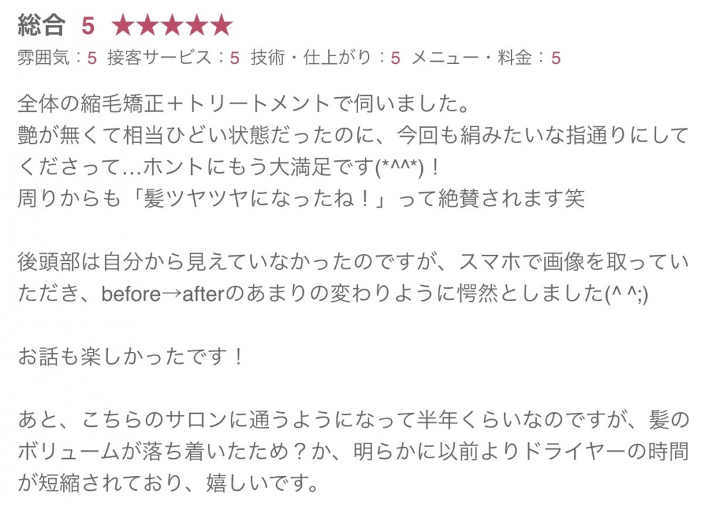 キューティクルを壊さずにクセを伸ばせるので、ダメージが少なく柔らかい仕上がりになります。