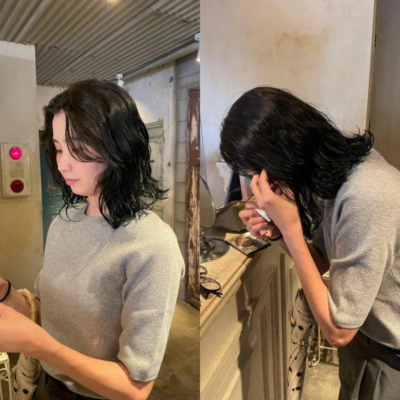 縮毛矯正とパーマを分けたときのスタイルです。